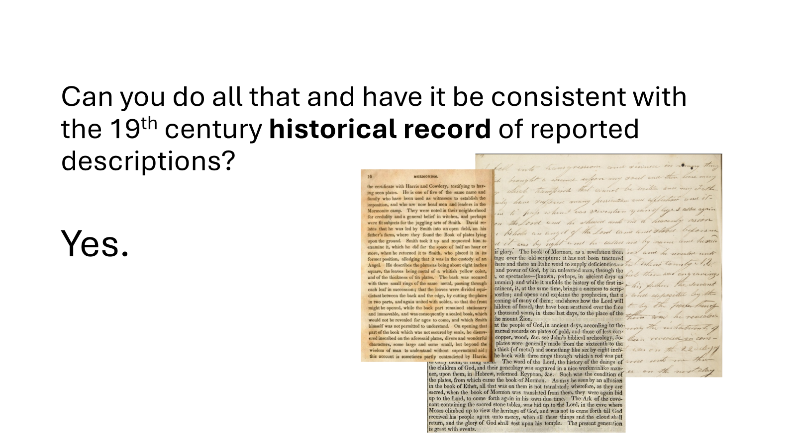 Can you do all of this and have it be consistent with the 19th century historical record reported descriptions?