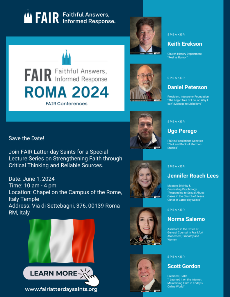 FAIR (fairlatterdaysaints.org), is pleased to announce a special lecture series aimed at strengthening faith through the development of critical thinking skills and the discernment of reliable sources. The lecture series will feature speakers from FAIR who will address topics such as the importance of critical thinking in matters of faith, strategies for evaluating and utilizing reliable sources, and how to navigate complex theological questions with confidence and clarity.