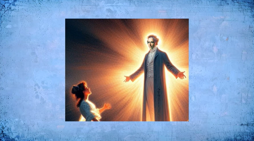 He was then led to an incredibly beautiful city, and then an even higher, more glorious place. There was a stunning mansion, “clothed with fire and intense light.” The guide explained that it was where God dwelled. Retreating, they met his deceased mother and sister, and Lorenzo stayed a short time with them.