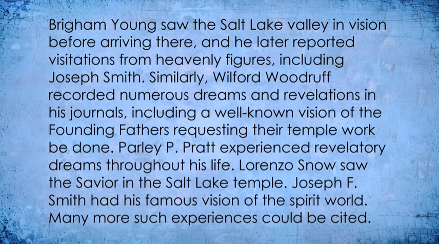 Many of the same figures highlighted in this paper later reported receiving additional visions and dreams. For example, Brigham Young saw the Salt Lake Valley in vision before arriving there, and he later reported visitations from heavenly figures, including Joseph Smith. Similarly, Wilford Woodruff recorded numerous dreams and revelations in his journals, including a well-known vision of the Founding Fathers requesting their temple work be done. Parley P. Pratt experienced revelatory dreams throughout his life. Lorenzo Snow saw the Savior in the Salt Lake temple. Joseph F. Smith had his famous vision of the spirit world. Many more such experiences could be cited. These later visions, however, are outside the scope of this paper and will not be discussed in further detail.