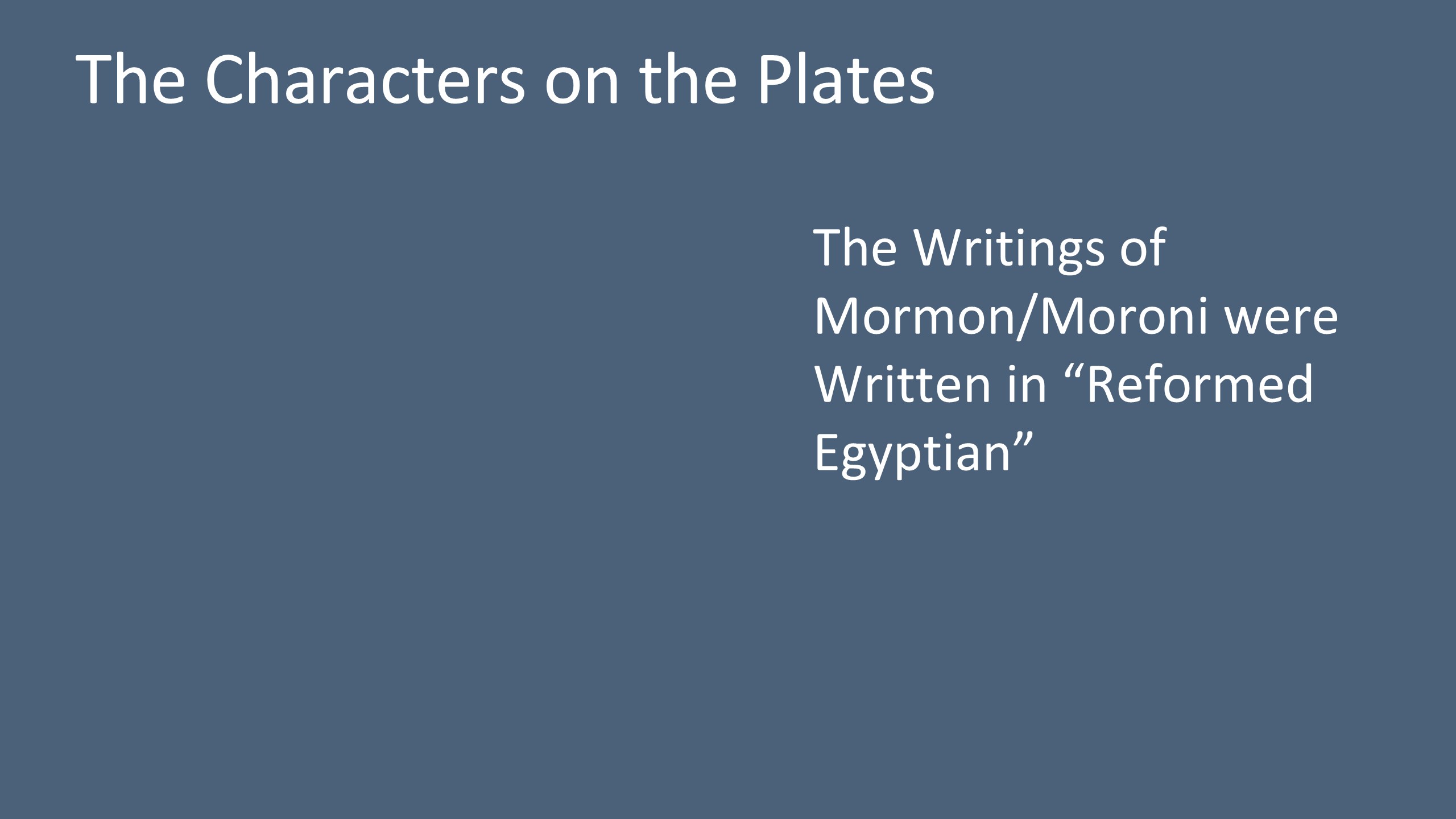Mormon and Moroni, who lived around 400 AD, created an abridgment of the main Nephite records using a language that had been altered over their thousand-year history, a language which they called reformed Egyptian. It was reformed so much that Mormon said, “none other people knoweth our language,” suggesting that even an ancient Egyptian would not have understood their language, in spite of the name given.