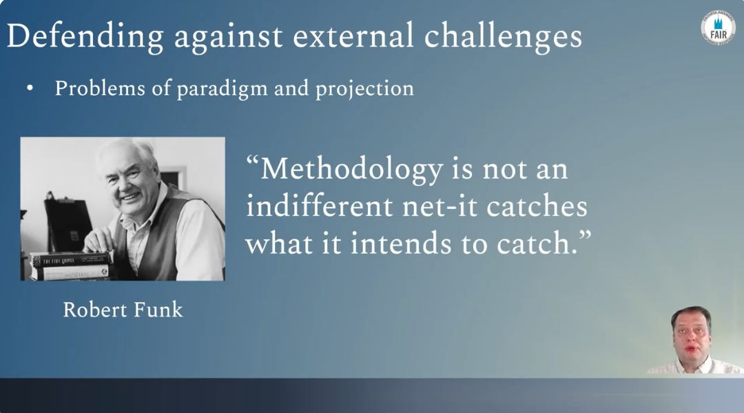 Biblical scholar Robert Funk made a refreshingly honest statement about his field when he said “Methodology is not an indifferent net. It catches what it intends to catch.”