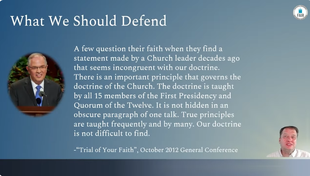 All of this is to say that in defending the Old Testament, we should exercise caution, focusing on defending concepts in the text that rise to the level of confirmed Restoration doctrine.