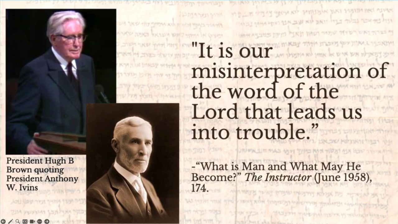 Some years ago, President Hubie Brown quoted President Anthony W. Ivans: It is our misinterpretation of the word of the Lord that leads us into trouble. Well, if true, the question we should be asking ourselves is, how can we avoid misinterpreting scripture?