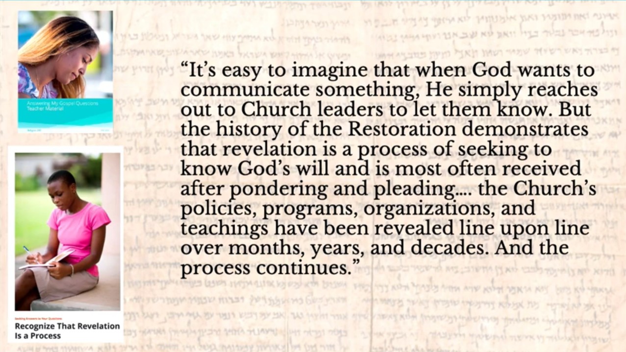 Now, in a recent church manual, here we actually find an entire subsection talking about recognizing that revelation is a process.