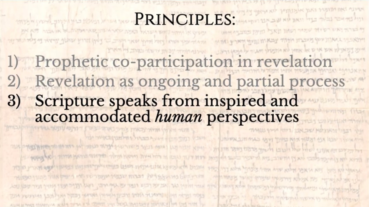 Well, this brings me to principle number three, which is that scripture speaks from inspired and accommodated human perspectives.