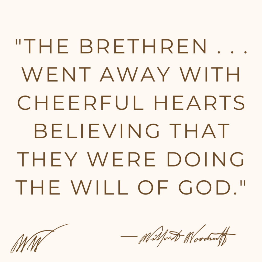 1 Wilford Woodruff’s Journal, July 17, 1846, p. 263, The Wilford Woodruff Papers, wilfordwoodruffpapers.org/journal/1846-07-17. Emphasis added.