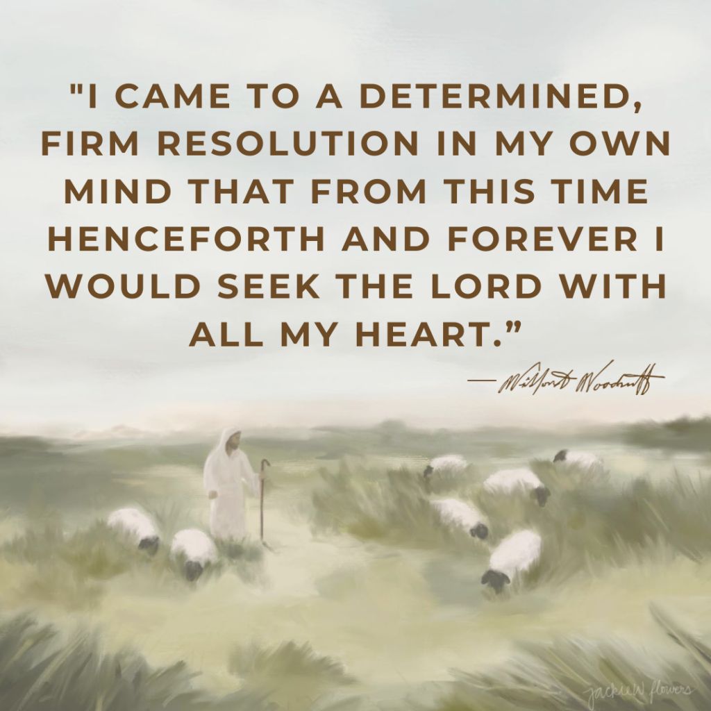 So, what does it look like to “walk in the Spirit”? We can learn how by following Wilford’s example. He recounted, “I came to a determined, firm resolution in my own mind that from this time henceforth and forever I would seek the Lord with all my heart. I would seek to know his will by faith, prayer, and the reading of the word of God, and I was determined to follow the dictation of the Holy Spirit and do the will of God as far as I could learn it.”