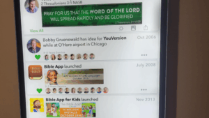 There is also the place where YouVersion was created—the number one Bible app on the planet. YouVersion will soon approach one billion—that’s billion with a “b”—downloads. It is currently delivering the word of God in 1,000 languages across the world, and it is one of the top ten apps on the planet.