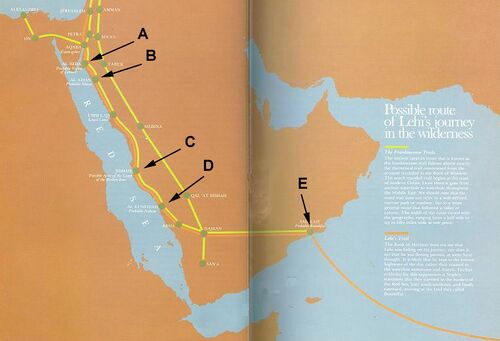 O caso de Nahom, ou NHM, nesta área é ainda mais apertado por estudo recente. Tornou-se claramente da nota- de Néfi "que viajava quase para o leste" do Nahom (1 Néfi 17: 1) -que ele e seu partido não só tinha ficado na área tribal do NHM, enterrando Ismael lá, mas também estavam seguindo ou sombreando o rastro de incenso, uma estrada de negociação que por então, ofereceu uma infra-estrutura de poços e forragem para os viajantes e seus animais. Da região geral da tribo NHM, todas as estradas virou leste. Como assim? Do outro lado do deserto Ramlat Sabcatayn, a leste desta região tribal e leste de Marib, estava a cidade de Shabwah, agora em ruínas. Por lei árabe antiga, era a esta cidade que todos incenso colhida nas terras altas do sul da Arábia foi levada para inventariar, pesagem e tributação. Além disso, os comerciantes fizeram presentes de incenso aos templos em Shabwah.[5] Após este processo, os comerciantes carregado o incenso e outros bens em camelos e enviado-os para as zonas mediterrânicas e da Mesopotâmia, viajando a primeira para o oeste e, em seguida, depois de atingir as bordas da região da tribo NHM, voltando para o norte (estas instruções são exatamente opostas daqueles que Néfi e seu partido seguido). Mesmo os atalhos assustadores através do deserto Ramlat Sabcatayn, o que deixou os viajantes sem água para 150 milhas, correu em geral leste-oeste. O que é importante para os nossos propósitos é o fato de que a sua vez "para o leste" da narrativa de Néfi não aparece em nenhuma fonte antiga conhecida, incluindo Plínio a famosa descrição da pessoa idosa das terras-incenso crescente da Arábia. Em uma palavra, ninguém sabia desta vez para o leste na trilha de incenso, exceto pessoas que viajaram ou que viviam nesse território. Este tipo de detalhe no livro de narrativa Mórmon, juntamente com a referência à Nahom, é uma informação que não estava disponível na época de Joseph Smith e, portanto, fica como prova convincente da antiguidade do texto.[6]