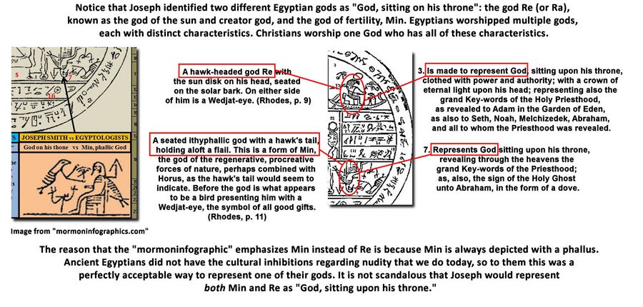 No Livro de Abraão, Fac-símile 2, Figura 7, Joseph Smith identificou o deus egípcio itifálico “Min” como a representação de “Deus sentado em seu trono Como poderia Deus ,o Pai, ser representado por um Deus pagão com um pênis ereto?