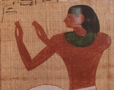 Papyrus está representada en el Louvre. Tenga en cuenta el estilo en el que se dibujan los pulgares y los dedos. (haga clic para agrandar)