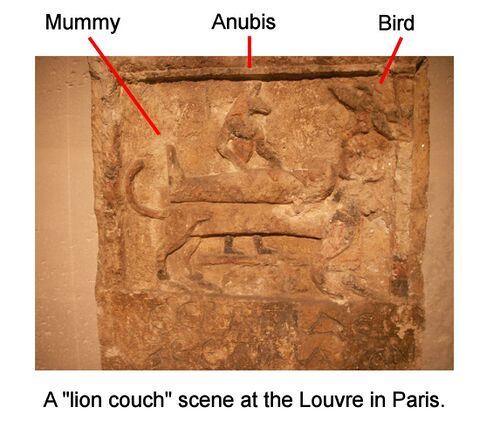 Fotografía de la talla de "sofá león" que aparece en el Louvre en París. Tenga en cuenta que sólo hay una sola ave se muestra. (haga clic para agrandar)