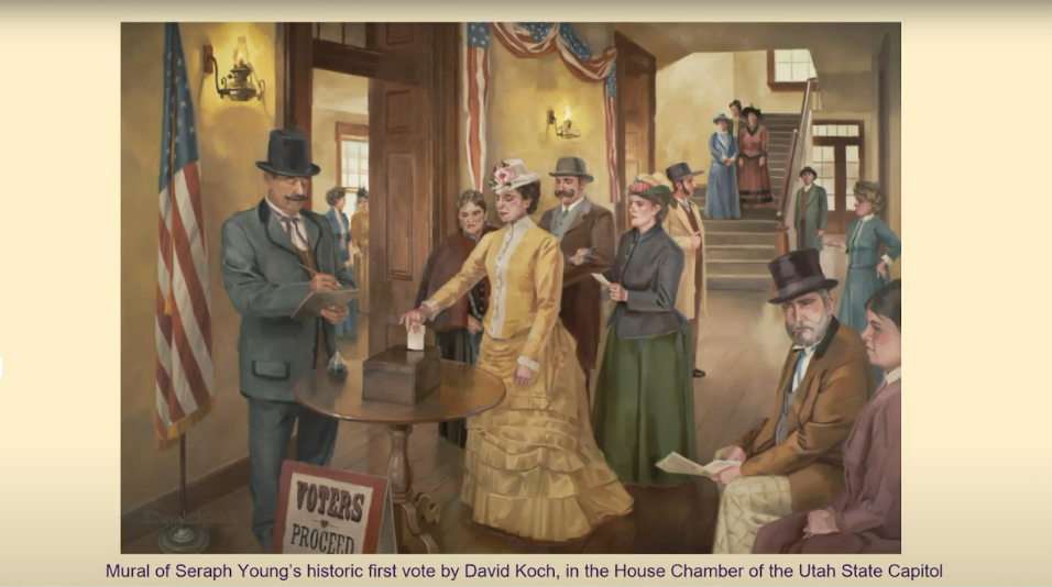 Sarah Kimball, who helped initiate the Relief Society in Nauvoo and then served for decades in Relief Society leadership in Utah, asserted that the sure foundations of the suffrage cause were deeply and permanently laid on the 17th of March 1842. That’s the Relief Society birthday. President George Albert Smith also, specifically, testified of this connection in 1945 saying, when the prophet Joseph Smith turned the key for the emancipation of womankind, it was turned for all the women of the world. From generation to generation, the number of women who can enjoy the blessings of religious liberty and civil liberty has been increasing.